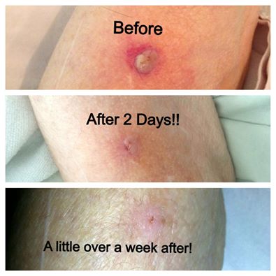 Once again, Young Living has proven itself! Like I said previously, I am a registered nurse with the blessing of dealing with hospice patients. One of my patients had developed this questionable lesion on her right arm in literally a couple of days. It was assumed by our medical director that this particular lesion could be a form of skin cancer. According to the patient’s daughter, she has a history of skin cancer and previously had an almost exact lesion form in the past. That particular lesion was later biopsied and confirmed to be a form of cancer. It of course had to be treated at the time and removed. Now on hospice due to other health conditions, if something like this appears, it would be left to evolve on it’s own and most likely to worsen. Hospice care specifically focuses on palliative care and not curative. (Don’t get me wrong, hospice is a beautiful and wonderful thing and is very beneficial to the patient and family involved.) Anyways, the daughter was very worried about this lesion that had appeared nonetheless. It just so happened upon my visit, I had on hand some Sacred Frankincense. With permission given by the daughter, I applied Sacred Frankincense to the site (just one drop then spread). I then gave a small sample bottle to the daughter to apply daily. She applied once in the morning and once before bed. Literally, just two days later, the lesion began to disappear and within a period of just a little over a week, the lesion is almost gone! Incredible!! You see, Frankincense works by regenerating cells to it’s original form. It helps repair the DNA of cells when damaged. 95% of cancer results from damaged DNA. Frankincense is also made up of 70% monoterpenes which increase the level of liver enzymes that are involved in removing carcinogenic (cancer causing) toxins. The constituents in Young Living essential oils never cease to amaze me. Obviously, the route of applying the oil topically is FAR more less invasive then the way modern medicine were to treat. These are ways and descriptions of treatment options currently used to treat forms of skin cancer (copied and pasted from mayoclinic.com):