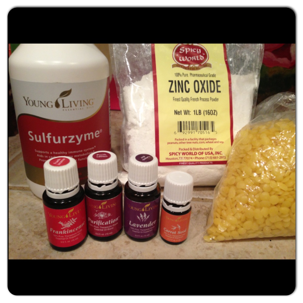 Pour melted oil and pellets in a bowl with 3 oz of distilled water and mix with hand mixer. Add zinc oxide and the powder of the Sulfurzyme tablets. Mix well.