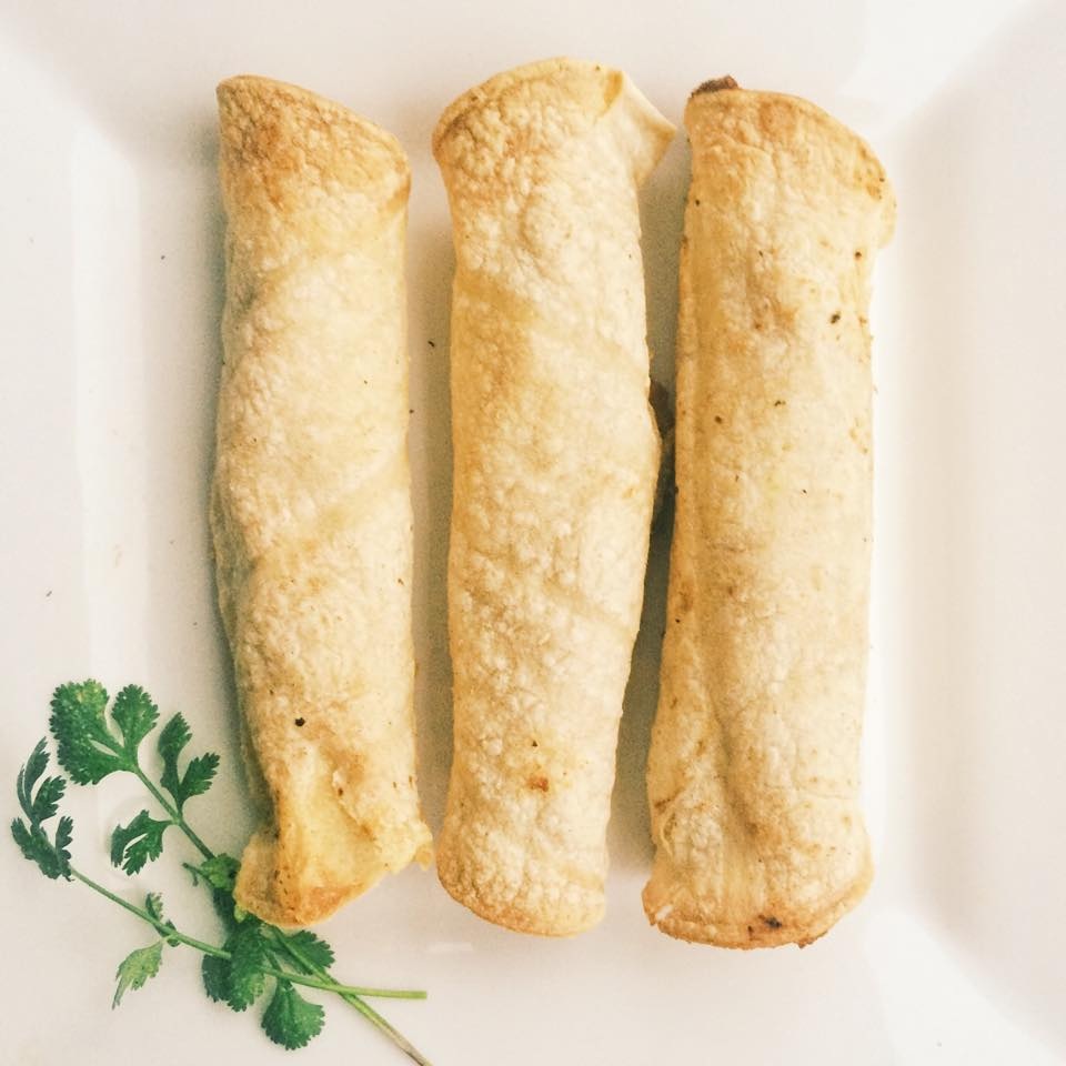 Now, assemble! Place on one side of the tortilla then roll. Once rolled, I turned them over so they wouldn’t undo. I cooked them until golden brown and crispy (maybe 20 min give or take). My kids loved them so much they each had THREE! #momwin